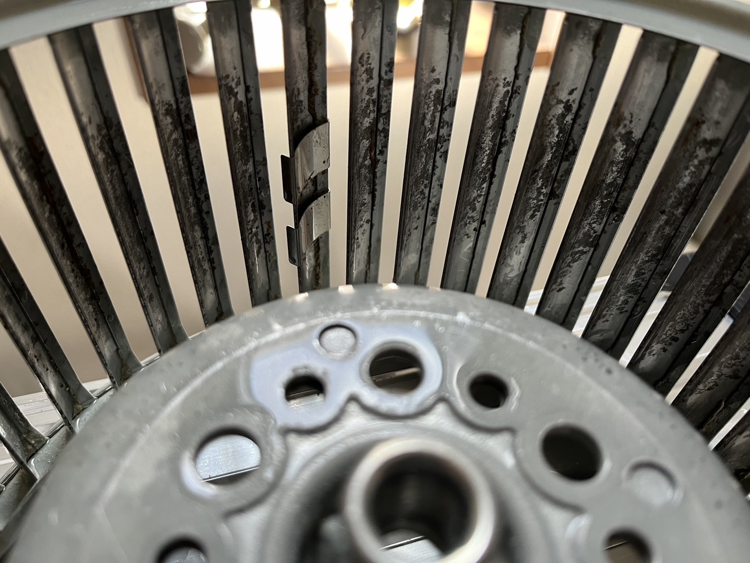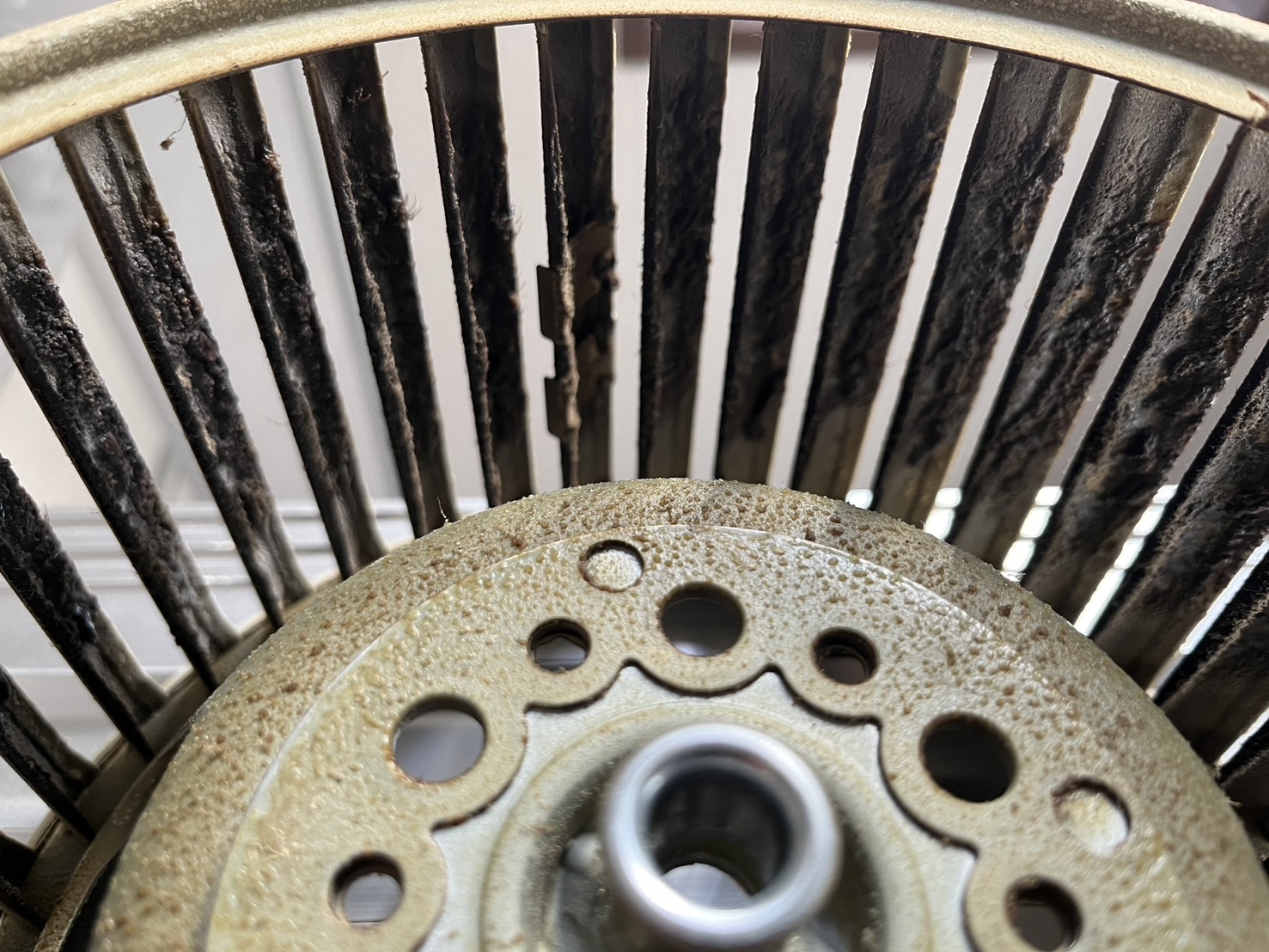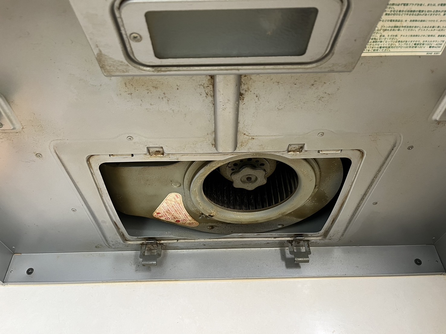 もう何年もクリーニングをしていないとの事で、油が硬くなっていて、シロッコファンは2度つけ置きをし、削り取る作業も大変でした。