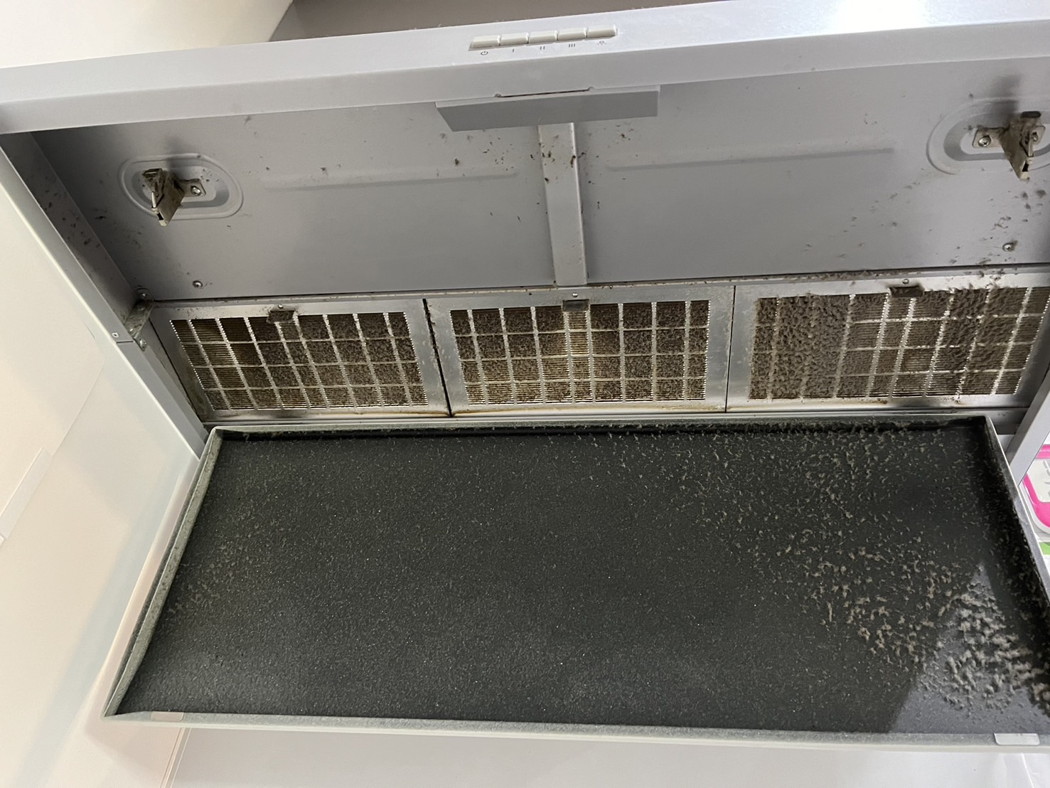 M様から築5年で初めてのクリーニングのご依頼。 こまめにお掃除をされているようで、5年目にしてはひどくは汚れていませんでした。 レンジフードは、フィルターが目詰まりをしていました。 浴室は苦戦する黒色、どうしても石鹸カスなどが、目立ってしまいます。 濡れているときれいに見えるので、乾かしてはチェックを繰り返します。 レンジフード、浴室ともキレイになったと喜んでいただけました。