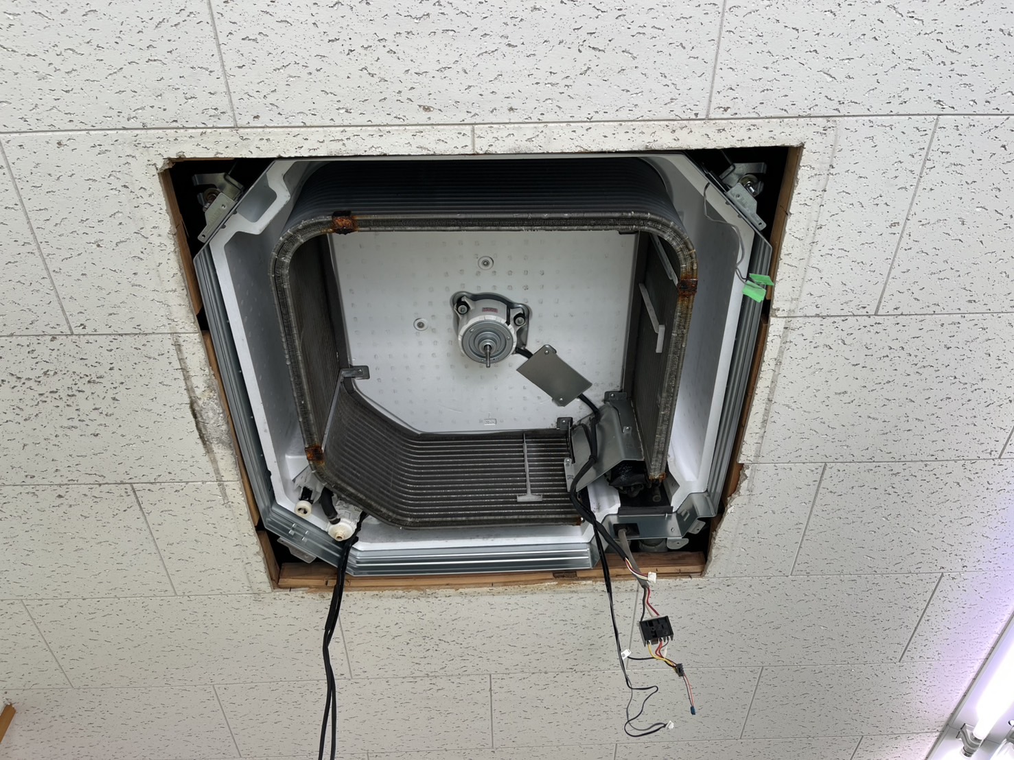 パネル、ドレンパン、ファンを外しました。
