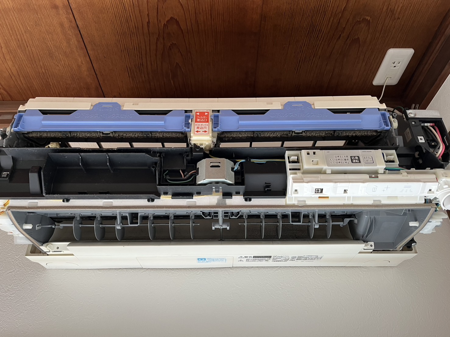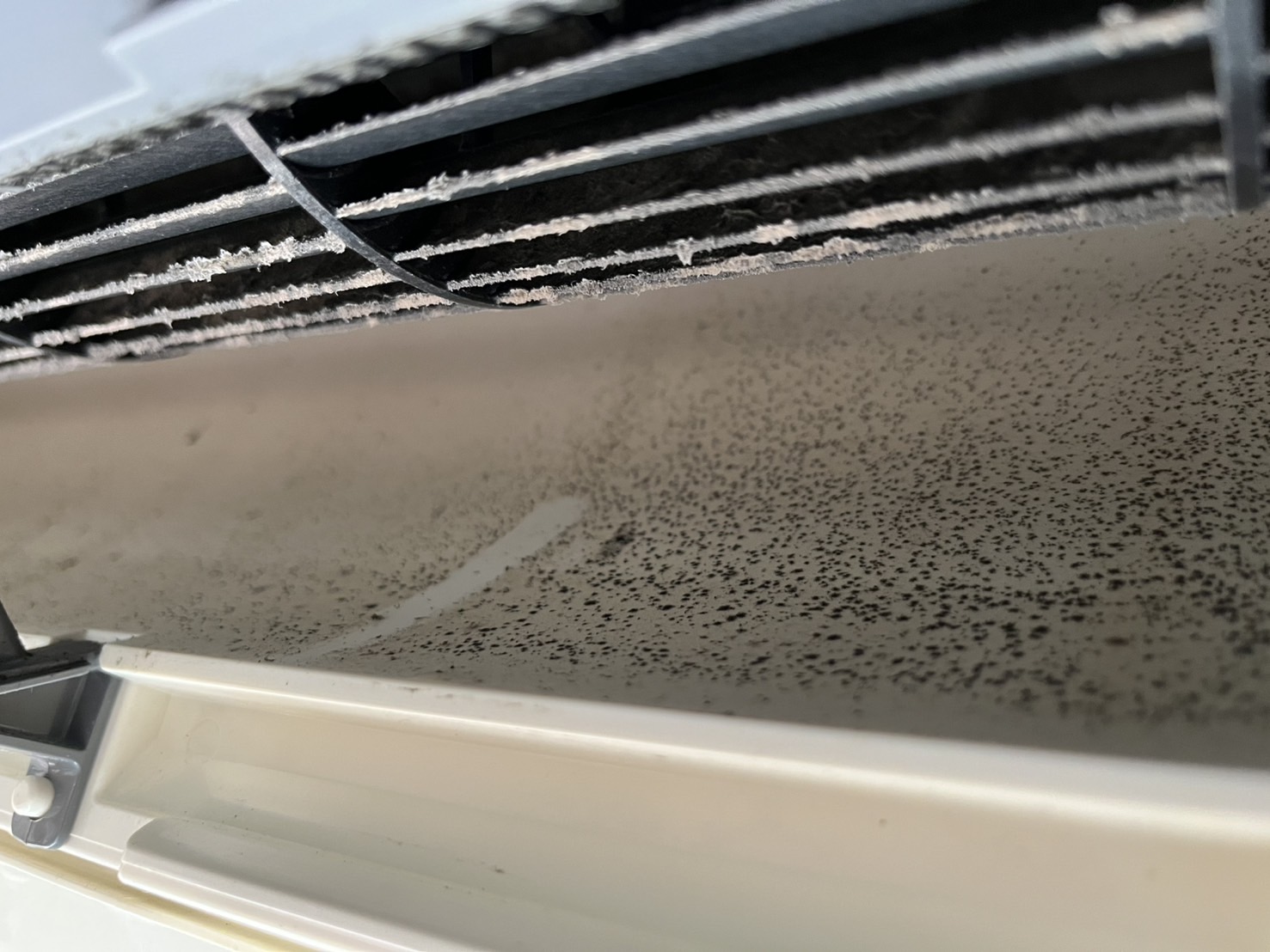 三菱お掃除機能付きエアコン 前回にリビングのエアコンクリーニングをしていただき、その時に見た汚水に驚かれて、寝室のエアコンクリーニングも、ご依頼をいただきました。