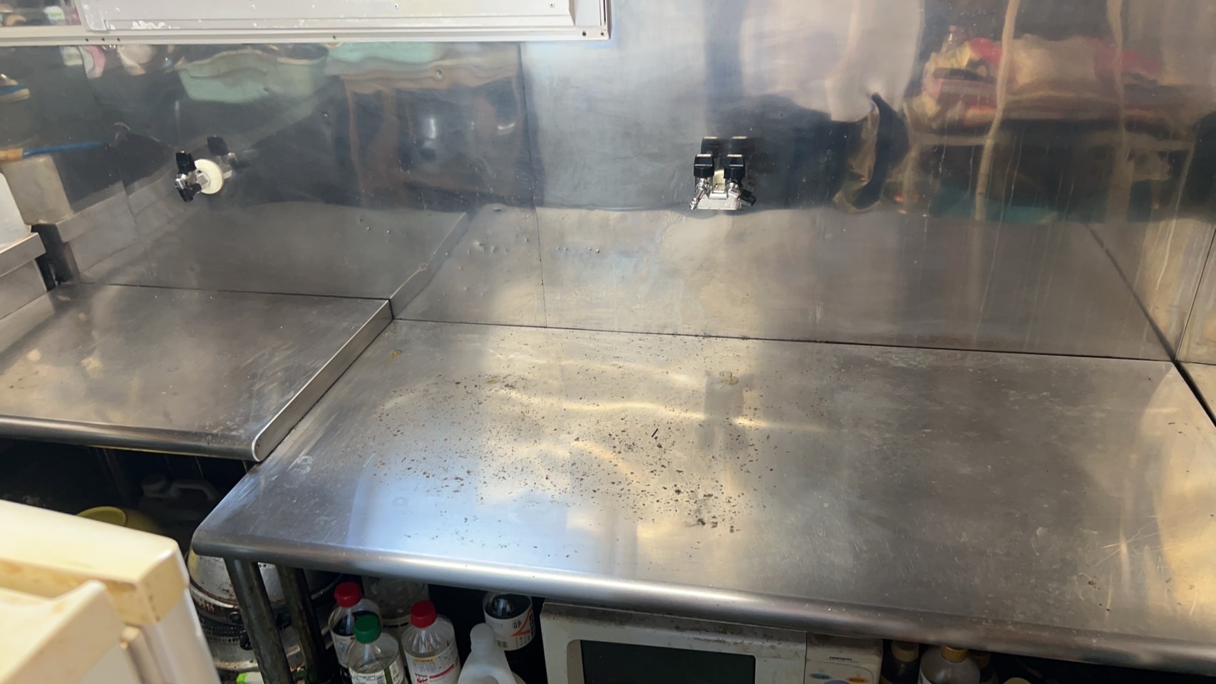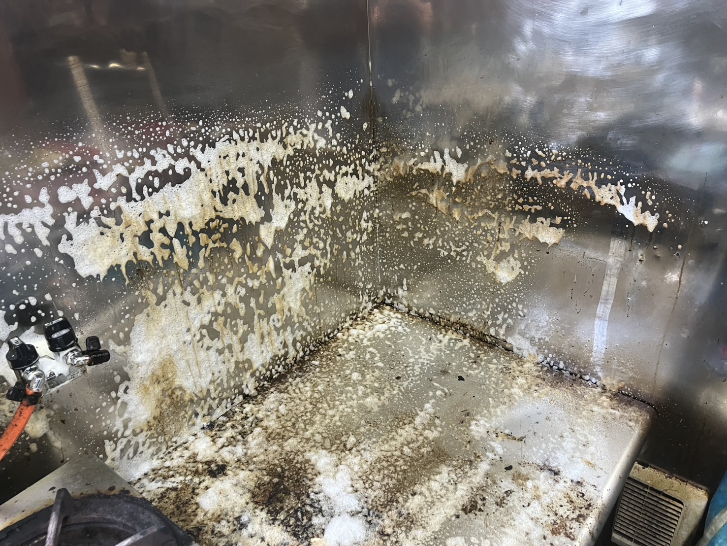 油汚れ洗剤を吹き付け、しばらく放置します