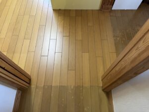 剥離をした箇所との差がはっきりしています。 この後ワックスをかけます。