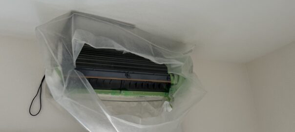 本日は、毎年お伺いしている美容室さんの天井4方向エアコン。 お花が沢山あって、素敵な美容室さんです。 電装ボックスを開けて、コネクタを抜いていきます。 取り外した電装ボックス パネル、ドレンパン、ファンを外しました。 養 … 続きを読む 天埋めエアコンクリーニング