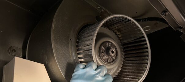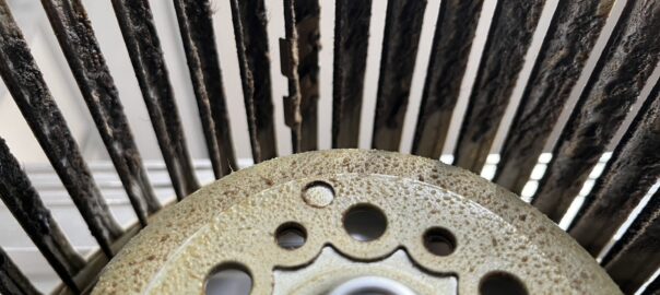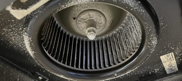 毎年この時期にA様邸にお伺いします。 ワンタッチのシロッコファンを取り外し薬剤につけ置きし、その間に他のクリーニングをします。 削り取る作業もなく、シロッコファンが綺麗になりました。