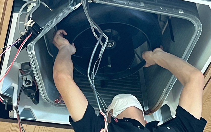 作業終了後には、分解して清掃した部品や清掃箇所を確認いただき、その後部品を取り付けて作業が完了となります。